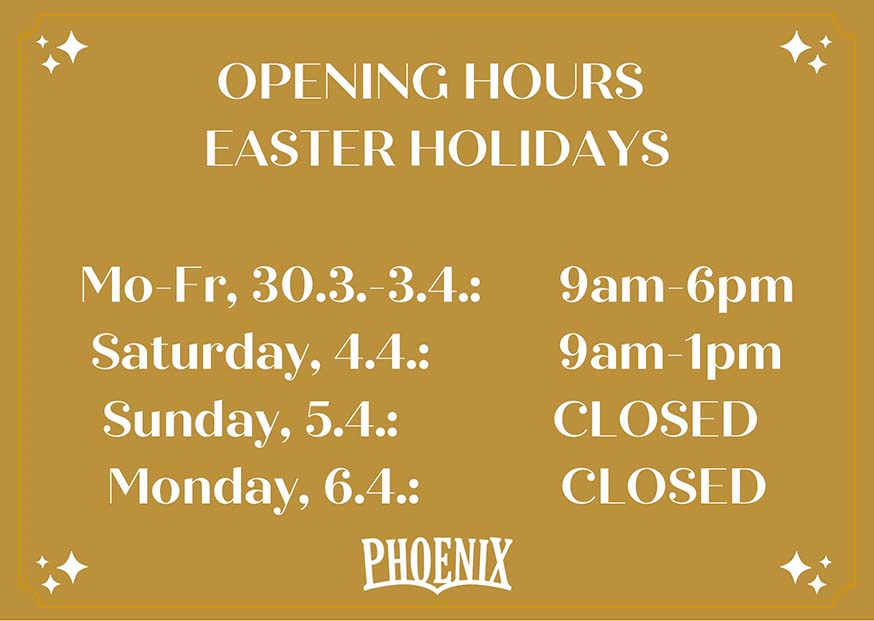 9020 Klagenfurt am Wörthersee | Alter Platz 24 | Mon-Tue & Thu-Sat: 9am - 6pm | Sun: 10am - 6pm | Wednesday closed | +43(0)463/504024 info@phoenixbookcafe.com